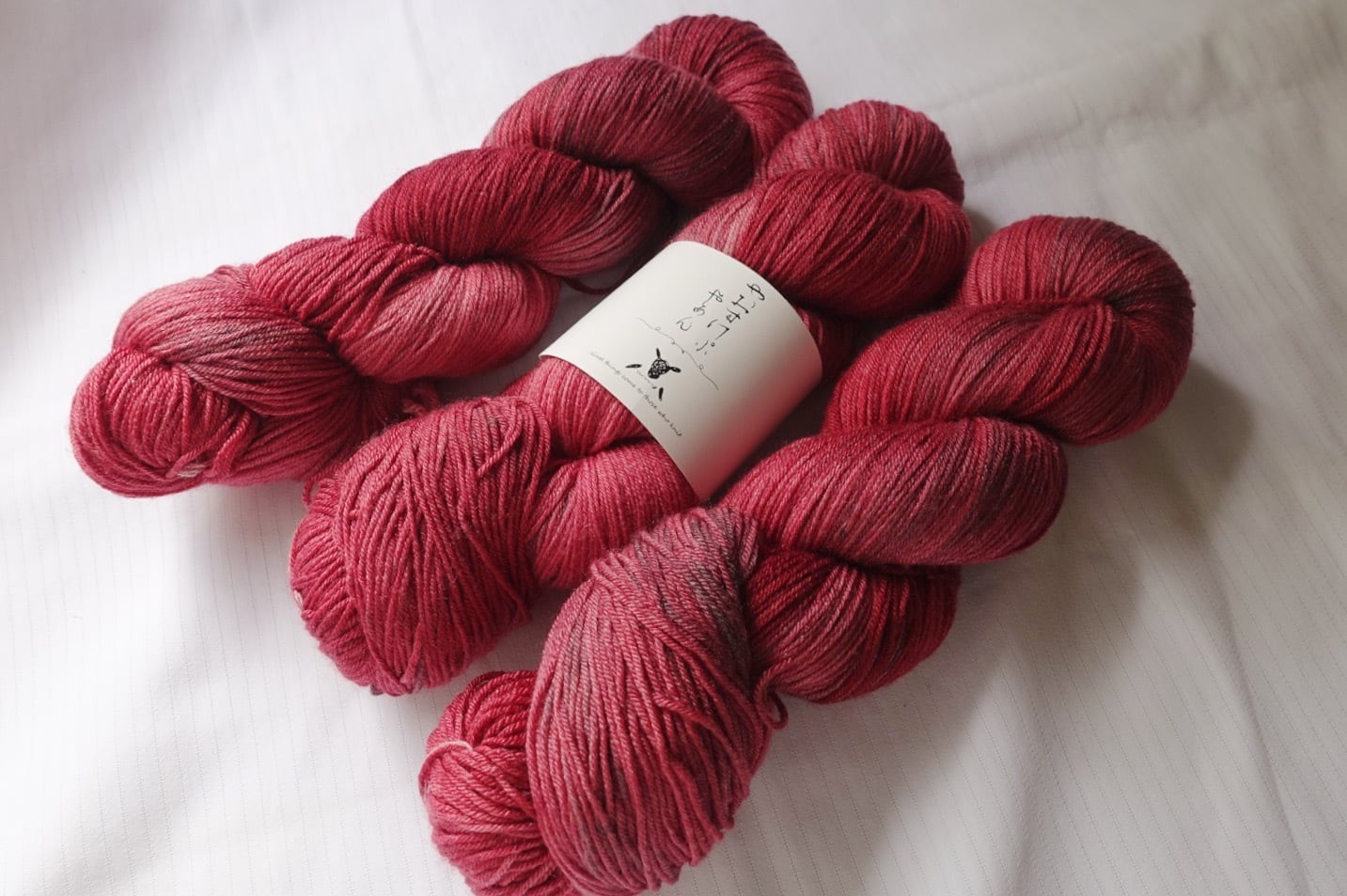 今回の糸は、そんなキイチゴジュースのイメージで染めた赤。