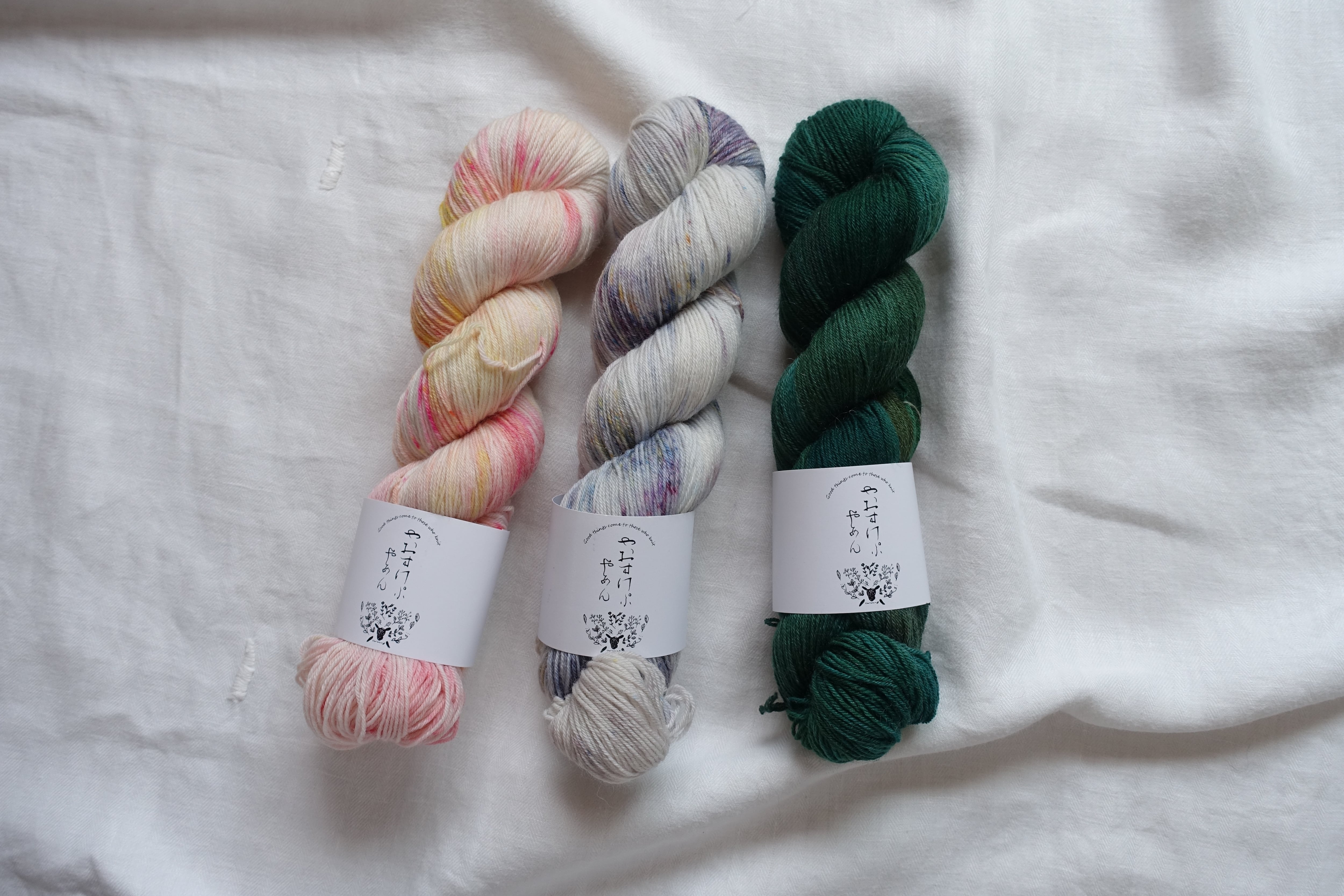 まるで水面に色とりどりの花びらがヒラヒラと風に乗って落ちたような手染め毛糸。