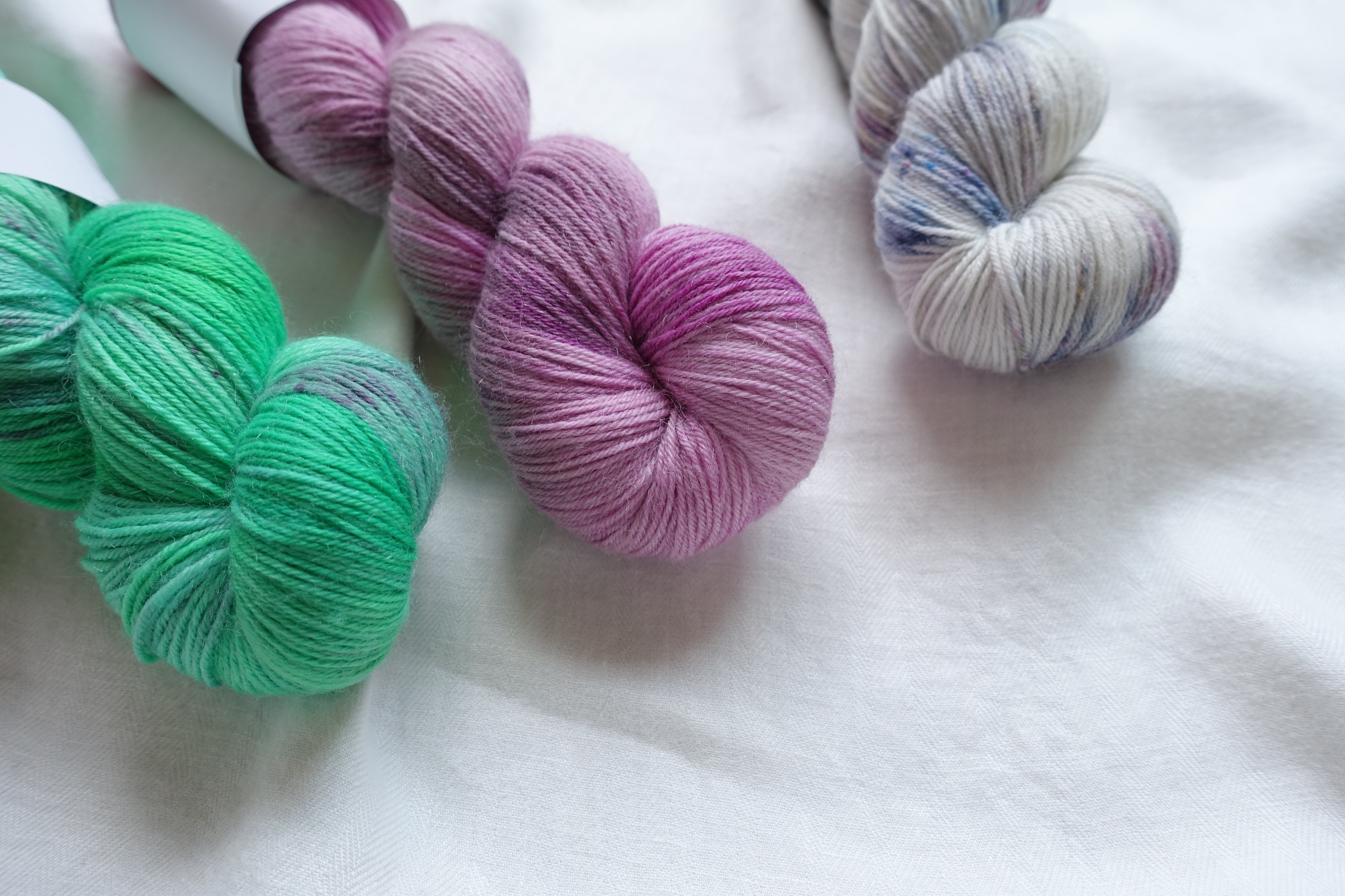 1かせで靴下を編める100g425mのモヘア混の糸。