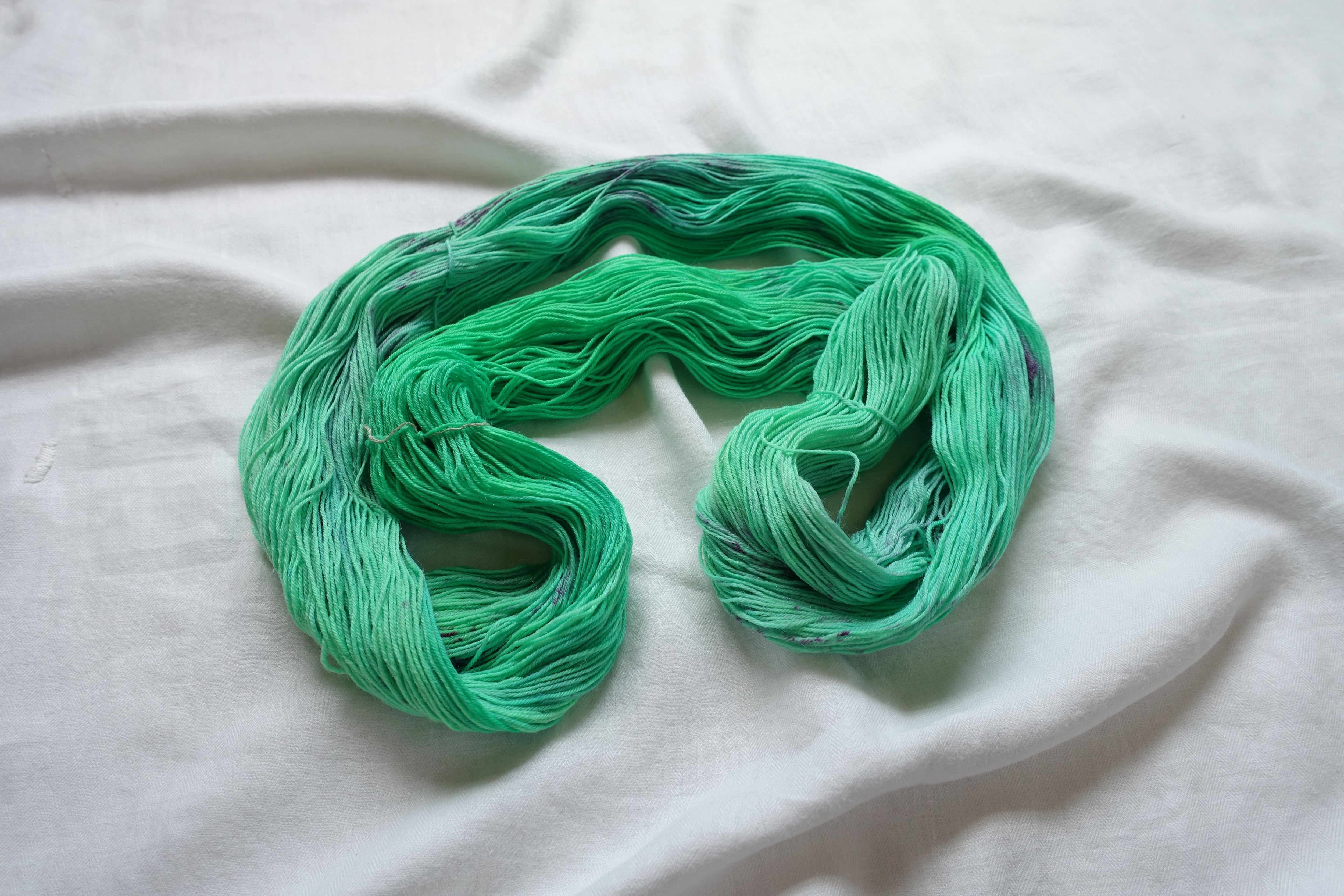 そう思った朝に染めたこちらの色、パステルカラーの毛糸ともとても合わせやすいカラーです。